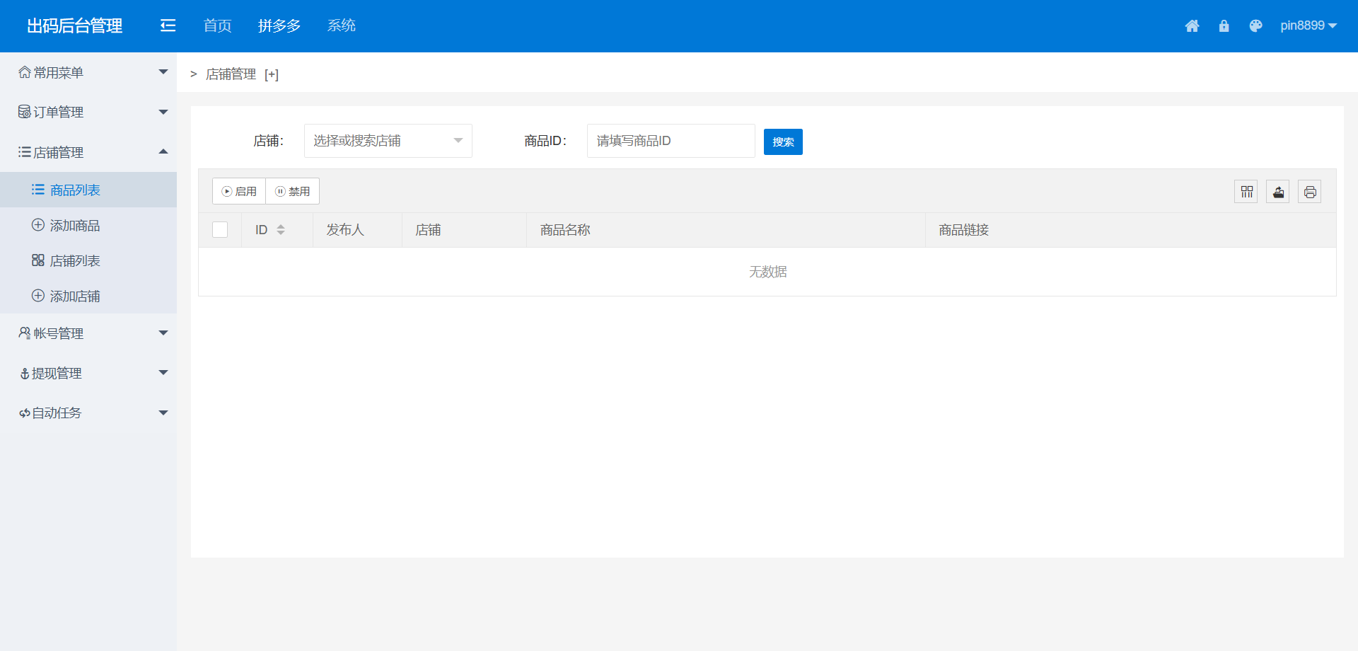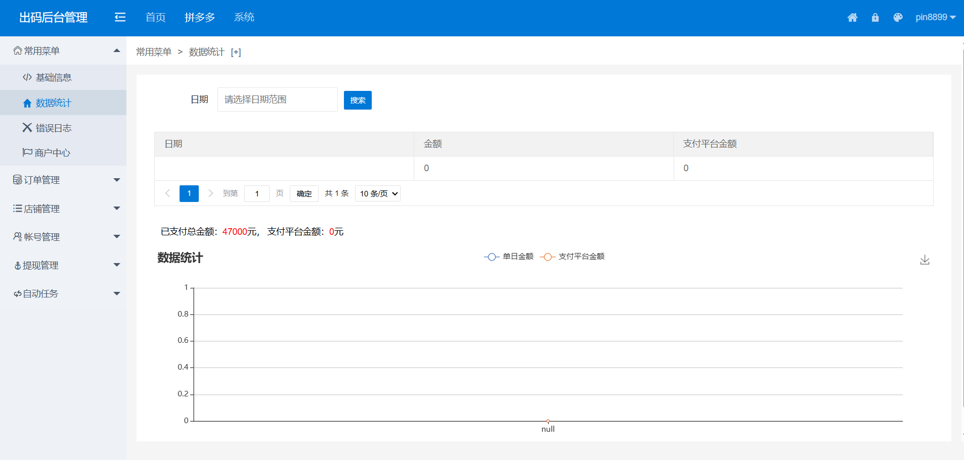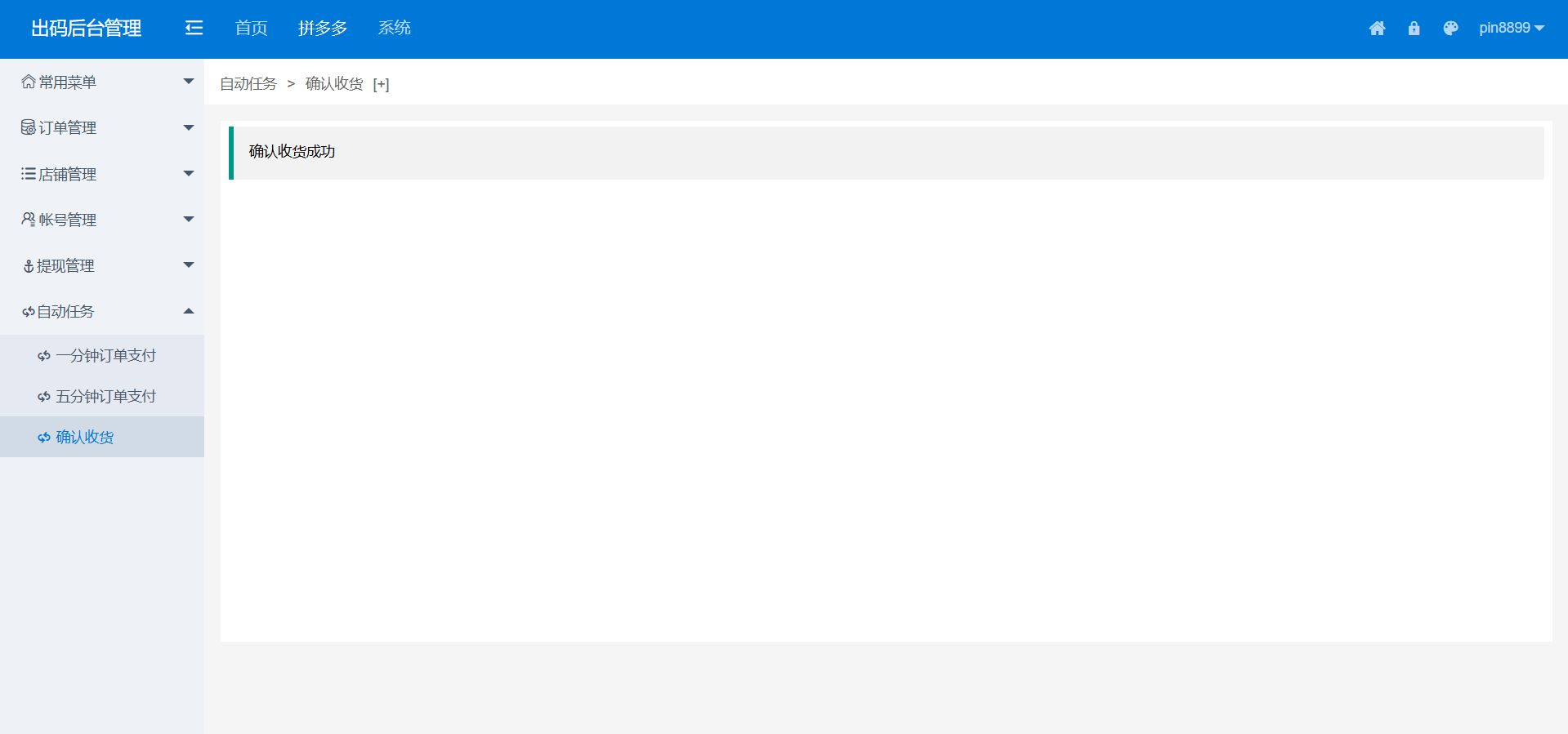 本系统为拼多多出码通道定制化支付解决方案,集成PC端实时监控、授权端程序与自动化运营模块。系统支持多账号轮询出码,实现支付流程全自动化管理,适用于四方支付业务场景。