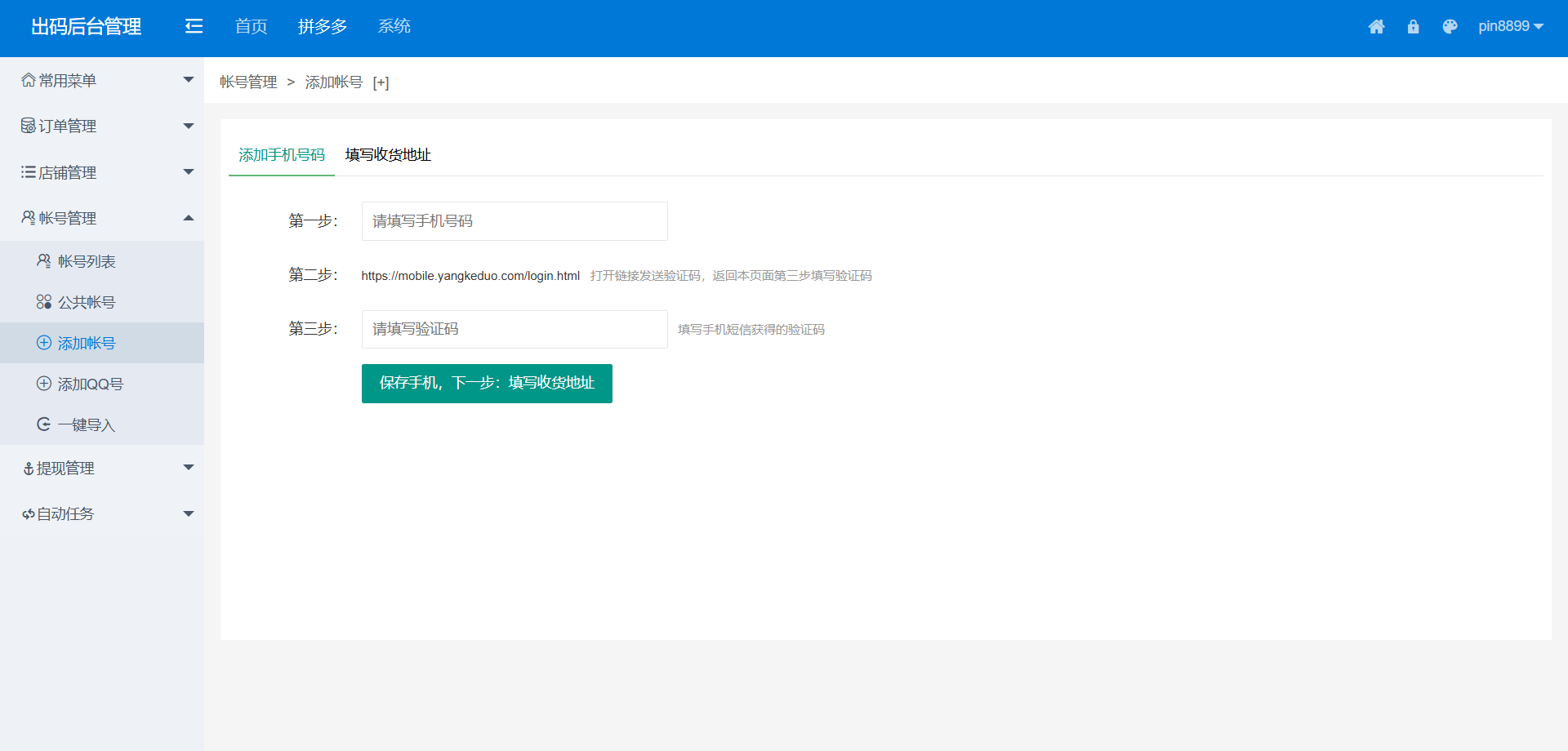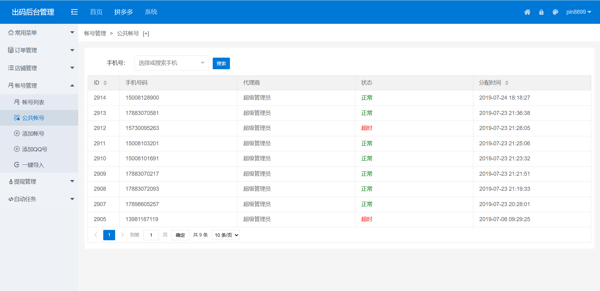 集成账号列表管理与公共账号池功能