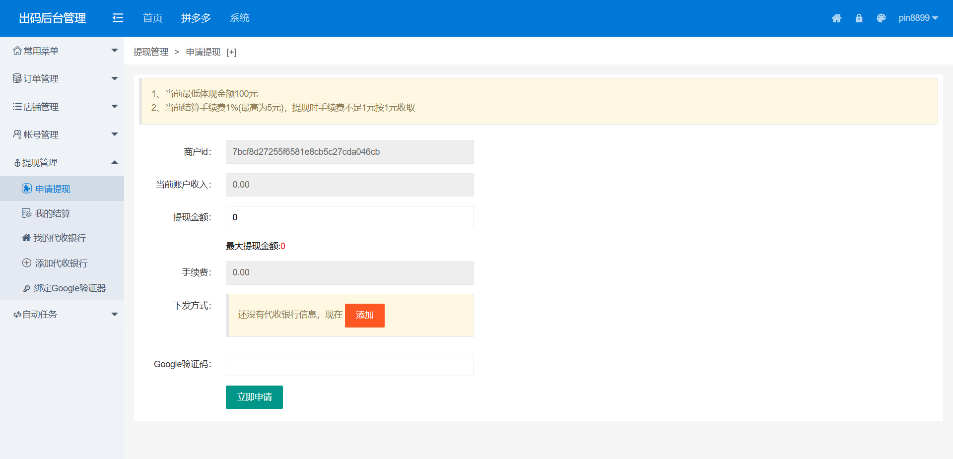 提现管理模块